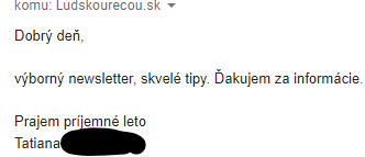 Spoločnými prevádzkovateľmi na účely spracovania osobných údajov je ĽudskouRečou.sk s.r.o., Hlavná 108, 040 01 Košice – mestská časť Staré Mesto, IČO: 52 056 198 a Libertax Consulting s.r.o, Moyzesova 36, 040 01 Košice – mestská časť Staré Mesto, IČO: 44 121 881. Jediný osobný údaj, ktorý spoločnosť spracováva, je Vaša e-mailová adresa – a to za účelom zasielania nových článkov, tipov a noviniek z blogu ĽudskouRečou.sk z oblasti daní, účtovníctva a podnikateľských zákonov od autora Petra Furmaníka či spriaznených autorov. E-mail Vám príde maximálne 6x mesačne a v databáze ho budem mať, až kým budete otvárať moje e-maily – po neotvorení 5 e-mailov za sebou bude vymazaný. Zásady spracovania osobných údajov si môžete pozrieť v časti “Osobné údaje”.